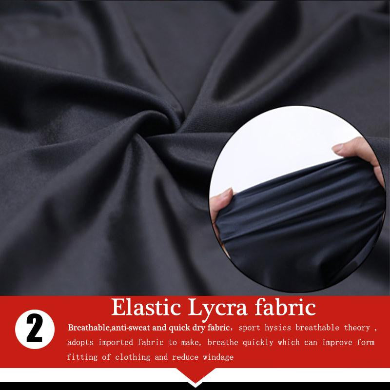High quality tights fabric. It can keep you dry and cool in the hot condition and warm in cold conditions even you're sweaty. The jersey never adhere to your skin.